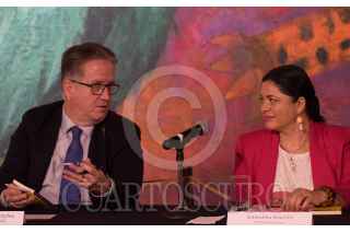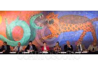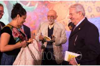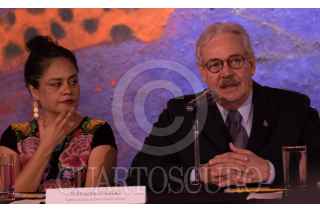 CIUDAD DE MÉXICO, 03JUNIO2019.- Gerardo Hierro Molina, yerno de Don Miguel Portilla; Natalia Toledo, subsecretaria de Diversidad Cultural; Eduardo Matos Moctezuma, arqueólogo e investigador emérito y Gonzalo Celorio, director de la Academia de la Lengua, se despidieron al termino de la conferencia de prensa en la que anunciaron el Homenaje Nacional e Internacional que se realizará al filósofo e historiador Miguel León Portilla, quién se encuentra hospitalizado. Se realizó en el Museo de Antropología e Historia. FOTO: GRACIELA LÓPEZ /CUARTOSCURO.COM