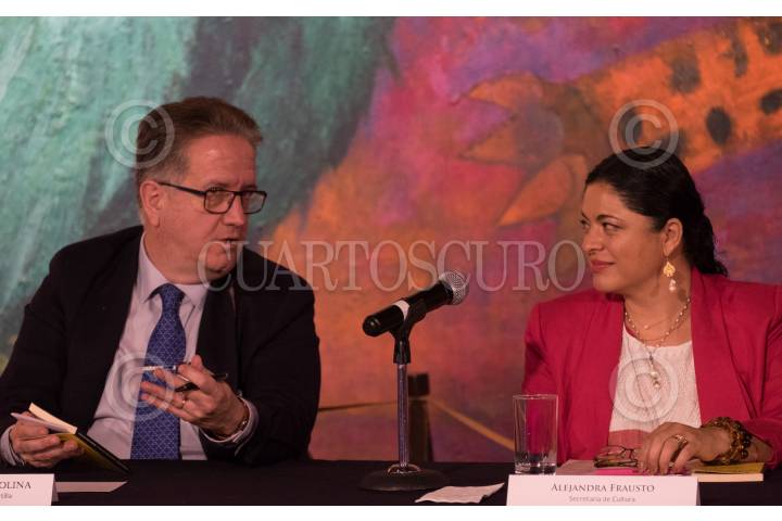 CIUDAD DE MÉXICO, 03JUNIO2019.- Gerardo Hierro Molina, yerno de Don Miguel Portilla; Natalia Toledo, subsecretaria de Diversidad Cultural; Eduardo Matos Moctezuma, arqueólogo e investigador emérito y Gonzalo Celorio, director de la Academia de la Lengua, se despidieron al termino de la conferencia de prensa en la que anunciaron el Homenaje Nacional e Internacional que se realizará al filósofo e historiador Miguel León Portilla, quién se encuentra hospitalizado. Se realizó en el Museo de Antropología e Historia. FOTO: GRACIELA LÓPEZ /CUARTOSCURO.COM