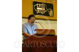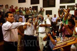 VILLAHERMOSA, TABASCO 21ABRIL2005.- El legislador y coordinador parlamentario del PRD, Adolfo Díaz Orueta dio lectura a una propuesta por el cual solicita que la soberanía del H. Congreso del Estado de la LVIII Legislatura se manifieste en contra del proceso ilegal de desafuero que enfrenta Andres Manuel López Obrador como jefe del Gobierno del Distrito Federal. FOTO: Marco Polo Guzmán/CUARTOSCURO.COM