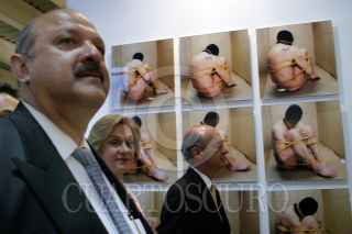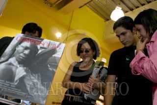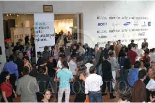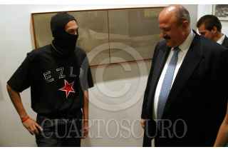 MEXICO, D.F. 21ABRIL2005.- El futbolista zapatista y el secretario de Educación Pública, Reyes Tamez se encontraron durante el recorrido por ¨MACO¨, méxico arte contemporaneo, evento realizado en EXpoReforma. FOTO: Sandra Perdomo/CUARTOSCURO.COM
