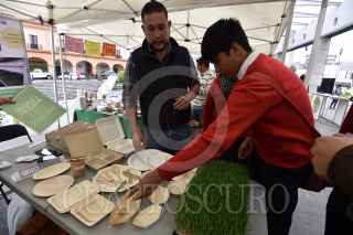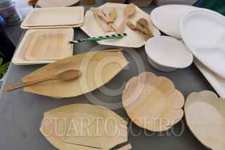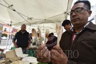 TOLUCA, ESTADO DE MÉXICO, 04JUNIO2019.- Después de ser implementado en el municipio de Toluca y Metepec el reducir el uso desechables en alimentos, bolsas de plástico para la venta de productos en general, algunas personas han emprendido la veta de desechables biodegradables, ofreciendo cubiertos de bambú, platos y recipientes de fécula de trigo y maíz, así como popotes de papel, tal es el caso de BioTrade quienes ofrecieron sus productos en la Feria Ambiental organizada por el ayuntamiento de Toluca, en el marco del Día Mundial del Medio Ambiente que se celebra el 5 de junio. FOTO: CRISANTA ESPINOSA AGUILAR /CUARTOSCURO.COM