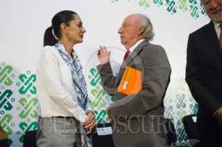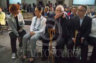 CIUDAD DE MEXICO, 04JUNIO2019.-Claudia Sheinbaum, jefa del Gobierno de la Ciudad, Victor Manuel Toledo, titular de Semarnat y Víctor Hugo Páramo Figueroa, coordinador ejecutivo de la Comisión Ambiental de la Megalópolis, durante la presentación de las medidas para mejorar la calidad del Aire, en el Museo interactivo MIDE, en el centro histórico de la Ciudad. FOTO: VICTIRIA VALTIERRA /CUARTOSCURO.COM