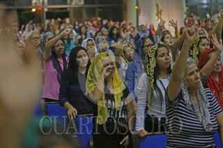 GUADALAJARA, JALISCO, 0504JUNIO2019.- Feligreses de la congregación de la Luz del Mundo (LDM) acuden a la iglesia central ubicada en la colonia Hermosa Provincia, para orar por su máximo líder religioso Naasón Joaquín García, tras saber que fue detenido en Estados Unidos, acusado de trata de personas, producción de pornografía infantil, abuso sexual entre otros delitos que se le imputan. FOTO: FERNANDO CARRANZA GARCIA / CUARTOSCURO.COM