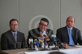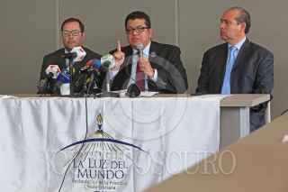 GUADALAJARA, JALISCO, 05MAYO2019.- Ismael Iñiguez abogado y miembro de la Iglesia de la Luz del Mundo, Abner Nicolás Menchaca Sub Director de Relaciones Publicas y Adrián Calvillo Vocero de la Iglesia de la Luz del Mundo, ofrecieron una conferencia de prensa para hablar sobre la situación jurídica del líder de la Iglesia de la Luz del Mundo Naasón Joaquín García, quien fue detenido en Estados Unidos por trata de personas, abuso sexual, producción de pornografía infantil entre otros delitos graves. FOTO: FERNANDO CARRANZA GARCIA / CUARTOSCURO.COM
