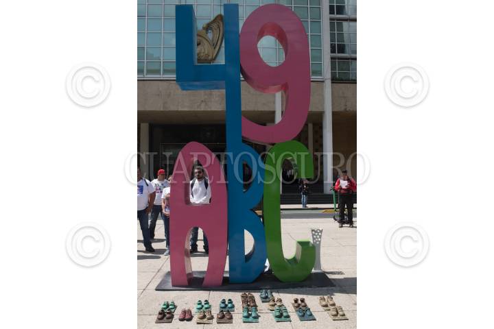CIUDAD DE MÉXICO, 05JUNIO2019.- Padres de los 49 niños que murieron en el incendio de la guardería ABC en Hermosillo, Sonora, se manifestaron en Antimonumento colocado en su memoria frente a las oficinas del IMSS, hoy se cumplen 10 años de esta tragedia sin que hasta la fecha se haya castigado por su responsabilidad. Los padres colocaron 25 zapatitos de bronce al pie del Antimonumento con el clamor de justicia para sus hijos. FOTO: MOISÉS PABLO /CUARTOSCURO.COM