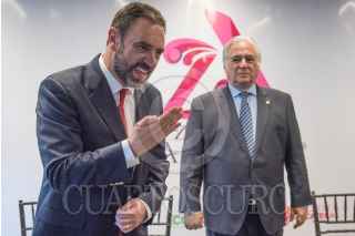 CIUDAD DE MÉXICO, 05JUNIO2019.- Se inauguró la exhibición de venta "Zacatecas Artesanal" en las instalaciones de Punto México de la Secretaría de Turismo (Sectur), en donde se ponen a la venta una gran variedad de productos artesanales de la entidad. En la imagen, Miguel Torruco Marqués, secretario de Turismo, y Alejandro Tello Cristerna, gobernador de Zacatecas. FOTO: MARIO JASSO /CUARTOSCURO.COM