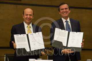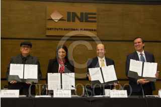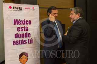 CIUDAD DE MÉXICO, 06JUNIO2019.- Edmundo Jacobo Secretario Ejecutivo del Instituto Nacional Electoral y René Miranda, Director ejecutivo del registro Federal electoral, durante la firma de convenio de colaboración con la organización “Iniciativa Ciudadana para la Promoción de la Cultura del Diálogo AC”, en el auditorio del instituto. FOTO: ROGELIO MORALES /CUARTOSCURO.COM