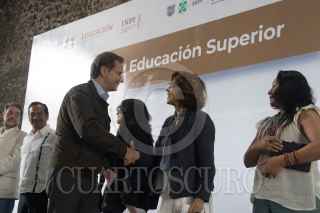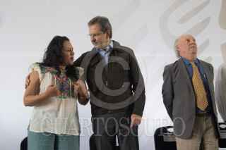 CIUDAD DE MÉXICO, 06JUNIO2019.- La senadora Beatriz Paredes y Esteban Moctezuma, secretario de Educación Pública, durante la presentación de la estrategia para el Fortalecimiento de la Interculturalidad en la Educación Superior, en el Patio Octavio Paz, de la Biblioteca de México. FOTO: MOISÉS PABLO /CUARTOSCURO.COM