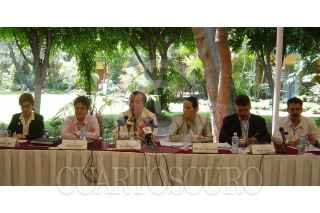 GUADALAJARA, JALISCO 16MAYO2005.- Durante la VII Reunión Regional de Vocales de Juntas Locales y Distritales, celebrada en Guadalajara, Jalisco, el Consejero Presidente del Instituto Federal Electoral, Luis Carlos Ugalde, aseguró que el IFE está listo para garantizar la excelencia y las condiciones de legalidad y transparencia en las elecciones federales del 2006. Lo acompañan, de izquierda a derecha, las Consejeras Alejandra Latapi y Teresa González, la Secretaria Ejecutiva, María del Carmen Alanís, y los Consejeros Arturo Sánchez y Rodrigo Morales. FOTO: Minerva Nieto/CUARTOSCURO.COM