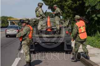 TAPACHULA, CHIAPAS, 08JUNIO2019.- Los retenes del Instituto Nacional de Migración continúan en las entradas y salidas del municipio, resguardados por elementos del ejército, marina y policía federal. Detienen autobuses, transporte público y autos con placas de Guatemala. Algunos elementos del ejercito mantienen un retén antes de llegar al Puente El Manguito, y reducen la carretera a un carril. FOTO: ISABEL MATEOS /CUARTOSCURO.COM