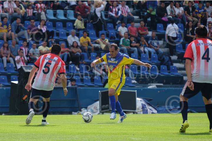 CIUDAD DE MÉXICO, 08JUNIO2019.- Con una anotación del Matías Vuoso, de las Águilas del América y un penalti de Adolfo “El Bofo“ Bautista, de las Chivas del Guadalajara, el partido de Clasico de leyendas quedó empatado en en el Estadio Azul. En el encuentro participaron ex jugadores como Cuauhtémoc Blanco, gobernador de Morelos, y Luis Roberto Alves “Zague”. FOTO:GRACIELA LÓPEZ /CUARTOSCURO.COM
