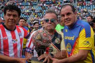 CIUDAD DE MÉXICO, 08JUNIO2019.- Con una anotación del Matías Vuoso, de las Águilas del América y un penalti de Adolfo “El Bofo“ Bautista, de las Chivas del Guadalajara, el partido de Clasico de leyendas quedó empatado en en el Estadio Azul. En el encuentro participaron ex jugadores como Cuauhtémoc Blanco, gobernador de Morelos, y Luis Roberto Alves “Zague”. FOTO:GRACIELA LÓPEZ /CUARTOSCURO.COM