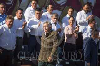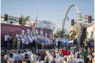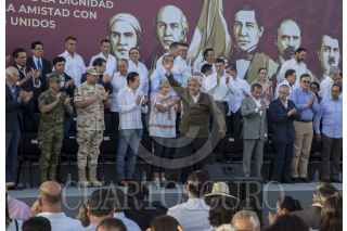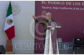 TIJUANA, BAJA CALIFORNIA, 08JUNIO2019.- El presidente de la República, Andrés Manuel López Obrador, durante la celebración por el acuerdo alcanzado con Estados Unidos que evita la imposición de aranceles a productos mexicanos. El mitin se realiza en la Zona Centro de la ciudad Fronteriza. Desde temprana hora cientos de simpatizantes se comenzaron a reunir previo al evento. FOTO: OMAR MARTÍNEZ /CUARTOSCURO.COM
