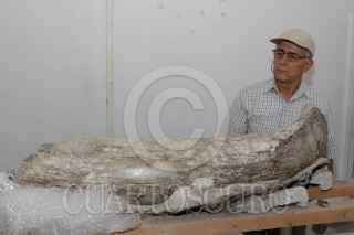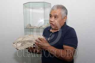 PUEBLA, PUEBLA, 09JUNIO2019.- Integrantes de la Asociación Civil Tepalcayotl localizaron restos de fósiles presuntamente de mamut de la especie Columbi, vestigios de camello, colmillo de un perro lobo gigante y herramientas punta flecha, con más de 14 mil años de antigüedad. Los hallazgos se encuentran en un cuarto habilitado como museo por las autoridades de la Junta auxiliar de San Francisco Totimehuacán y bajo el resguardo de la asociación civil. Isaac Chetla Muñoz, presidente de la junta auxiliar del poblado, pidió a Claudia Rivero Vivanco, presidenta municipal, el apoyo de una consolidación de un museo de sitio. FOTO: MIREYA NOVO /CUARTOSCURO.COM