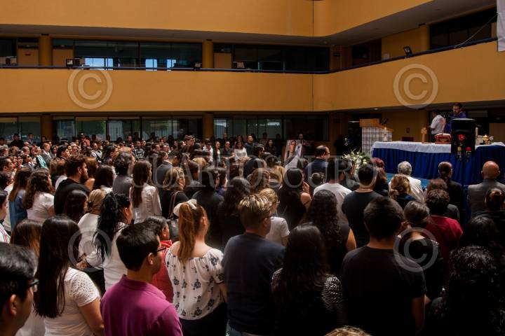 CIUDAD DE MÉXICO, 10JUNIO2019.- Entre abrazos y lágrimas, familiares, amigos, alumnado y autoridades de la Universidad del Pedregal despidieron con una misa en la explanada del plantel a Norberto Ronquillo Hernández, estudiante secuestrado el 04 de junio y cuyo cuerpo fue encontrado en las primeras horas de hoy en Xochimilco. FOTO: GALO CAÑAS /CUARTOSCURO.COM
