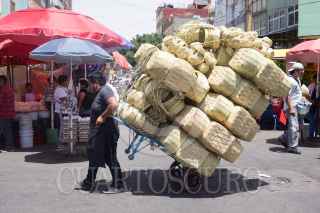 CIUDAD DE MÉXICO, 10JUNIO2019.- Un diablero cruza una de la calle del Rosario, afuera el Mercado la Merced. FOTO: GRACIELA LÓPEZ /CUARTOSCURO.COM