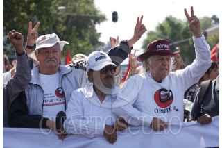 CIUDAD DE MÉXICO, 10JUNIO2019.- Decenas de personas marcharon del memorial, "La masacre del jueves de Corpus", al Zócalo capitalino, esto para conmemorar el 48 aniversario de el Halconazo en donde más de 120 estudiantes perdieron la vida y otros más fueron desaparecidos a causa de una represión por parte del gobierno hacia los estudiantes de la UNAM y del Politécnico, quienes exigían al entonces presidente, Luis Echeverría libertad política y democratización de la educación. FOTO: ROGELIO MORALES /CUARTOSCURO.COM