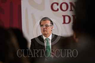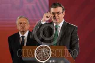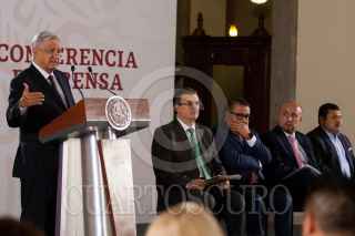 CIUDAD DE MÉXICO, 11JUNIO2019.- Andrés Manuel López Obrador, presidente de México,durante la conferencia matutina para anunciar la creación de una comisión especial para atender el flujo migratorio en la frontera sur, dicha comisión será integrada por: Francisco Garduño Yáñez, comisionado del Órgano Administrativo Desconcentrado de Prevención y Reinserción Social; General Vicente Antonio Hernández, comandante de la 36/a zona militar de Tapachula, Chiapas; Horacio Duarte Olivares, subsecretario de Empleo; Maximiliano Reyes Zuñiga, subsecretario para América Latina y El Caribe, y Javier May Rodríguez, subsecretario de Bienestar. FOTO: GALO CAÑAS /CUARTOSCURO.COM