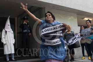 CIUDAD DE MÉXICO, 11JUNIO2019.- Mujeres transexuales se manifestaron en las oficinas de la Secretaría de Salud de la Ciudad de México para exigirle al gobierno encabezado por Claudia Sheinbaum que detenga la construcción de la Clínica Especializada en la Atención de Personas Transgéneros, ya que a decir de ellas este tipo de proyectos solo generan segregación hacia su comunidad, argumentan que los 30 millones de pesos que se tiene como presupuesto de esta clínica se destine en campañas de concientización hacia las personas trans, aseguran que actualmente la clínica especializada en atención a personas con VIH de la colonia Condesa no cuenta con los medicamentos necesarios para atender a los pacientes. FOTO: MOISÉS PABLO /CUARTOSCURO.COM