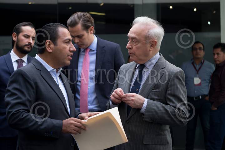CIUDAD DE MÉXICO, 11JUNIO2019.- Los senadores Eduardo Ramírez, Gina Cruz, Héctor Vasconcelos y Gustavo Madero al finalizar la conferencia de prensa de los integrantes de las comisiones del Tratado entre México, Estados Unidos y Canadá (T-MEC), realizada en el patio del federalismo del Senado de la República. FOTO: GRACIELA LÓPEZ /CUARTOSCURO.COM