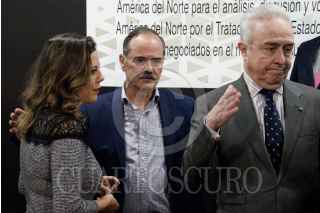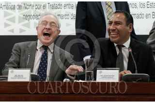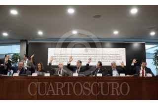 CIUDAD DE MÉXICO, 12JUNIO2019.- Los senadores Gustavo Enrique Madero, Ginna Andrea Cruz; Héctor Vasconcelos; Óscar Eduardo Ramírez; Raúl Bolaños Cacho; José Narró Céspedes y Alejandro Armenta Mier, durante la Reunión Extraordinaria de Trabajo de las Comisiones Unidas de Relaciones Exteriores, Puntos Constitucionales, Economía y Relaciones Exteriores América del Norte, en la que se somete a discusión el proyecto de dictamen para la aprobación del tratado de comercio entre los Estadios Unidos Mexicanos, los Estados Unidos de America y Canadá: T-MEC. Durante la sesión se estableció que la votación será realizada el próximo viernes. FOTO: MARIO JASSO /CUARTOSCURO.COM