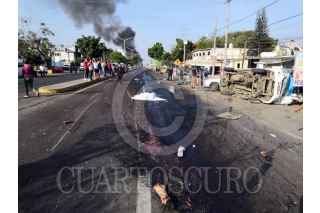 CUAUTLA, MORELOS, 12JUNIO2019. Un tráiler que se quedó sin frenos cuando circulaba en la carretera federal Cuautla-México, a la altura del poblado indígena de Tetelcingo, arrolló a varios vehículos y unidades del servicio de transporte público, así como a transeúntes que circulaban por el lugar para posteriormente impactarse e incendiarse. Cinco personas perdieron la vida y se reportan 18 heridos que fueron trasladados a hospitales de la región. FOTO: ESPECIAL /CUARTOSCURO.COM