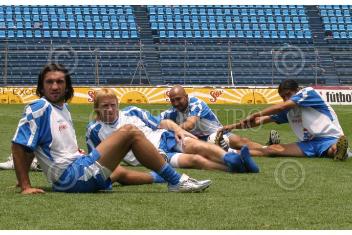 MEXICO, D.F. 17MAYO2005.- Oscar, ¨el conejo¨, Pérez, y Francisco, kikin , Fonseca, en conferencia al término de su entrenamiento, a unos días de su encuentro con el América. FOTO: Sandra Perdomo/CUARTOSCURO.COM