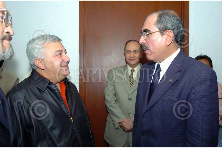 MEXICO, D.F. 17MAYO2005.- En la càmara de diputados, los coordinadores parlamentarios Pablo Gómez del PRD y Emilio Chuayffet del PRI, ofrecieron una conferencia de prensa para comentar sobre la orden de la SCJN a los legisladores citar a periodo extraordinario de sesiones para discutir y analizar las observaciones del Ejecutivo federal. FOTO: CUARTOSCURO.COM