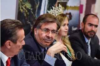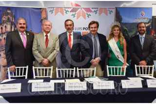 CIUDAD DE MEXICO 13JUNIO2019.- Alejandro Aguilera Gómez, subsecretario de Planeación y Política Turística; Arturo Esper Sulaimán, secretario de Turismo de San Luis Potosí, Lorena, reina de la Feria Nacional Potosina, y Manuel González Matienzo, presidente del Patronado de la Feria Nacional Potosina, encabezaron la presentación de la Feria Nacional Potosina (FENAPO) 2019, la cual se realizará del 2 a 25 de agosto, y contará con una gran variedad de espectáculos deportivos, artísticos y culturales. Además contará con una muestra gastronómica y conciertos en vivo destacando la participación de: Inspector, La Sonora Dinamita, Ángeles Azules, Camila, Sin Bandera, Grupo Bronco, entre otros. FOTO: MARIO JASSO / CUARTOSCURO.COM
