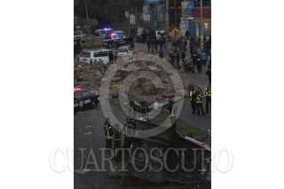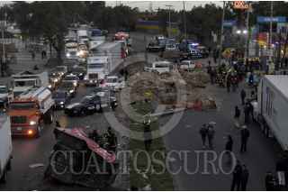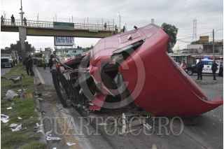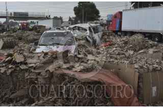 TEXCOCO, ESTADO DE MÉXICO, 13JUNIO2019.- Un trailer volcó sobre la carretera Lechería-Texcoco, la pesada unidad transportaba papel periódico para reciclar, los pesos cubos del material cayeron encima de dos autos lo que provocó la muerte de una mujer. FOTO: ARMANDO MONROY /CUARTOSCURO.COM