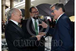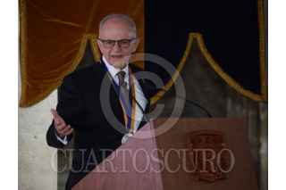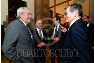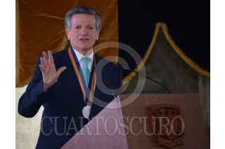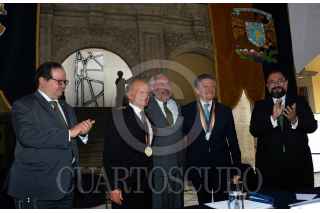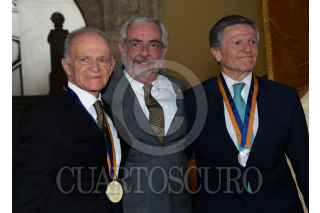 CIUDAD DE MÉXICO, 13JUNIO2019.- El rector de la UNAM, Enrique Graue Wiechers, entregó el “Reconocimiento al Máximo Mérito como Egresado” a Isaac Chertorivski y a Alfredo Harp Helú, en el marco del 90 aniversario de la Facultad de Contaduría y Administración (FCA), que es la más avanzada de las escuelas y facultades en fortalecer el emprendimiento y autoempleo, en facilitar instalaciones y docentes para propiciar esos temas entre el resto del alumnado, y vanguardista de todas las entidades académicas en facilitar el desarrollo integral de sus estudiantes con eventos culturales y deportivos. Acompañado por Juan Alberto Adam Siade, integrante de la Junta de Gobierno; y por Leonardo Lomelí Vanegas, secretario general, el rector Graue precisó que desde su incorporación a la Universidad, la transformación de la FCA como centro detonador del conocimiento en sus distintas disciplinas ha sido constante. “Hoy cuenta con más de 15 mil alumnos en licenciatura, y más de dos mil 500 en especialización, maestría y doctorado. Es una entidad pujante y en constante crecimiento”. FOTO: UNAM /CUARTOSCURO.COM