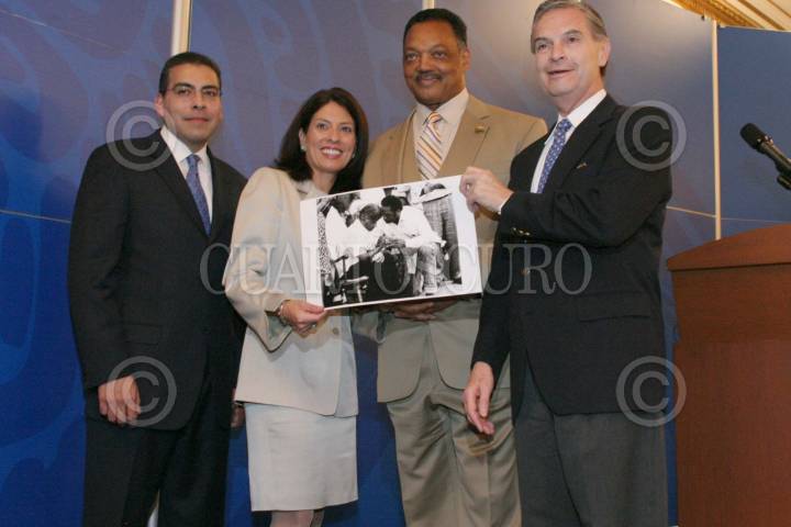 MEXICO, D.F., 18MAYO2005.- El reverendo Jesse Jackson y Luis Ernesto Derbez, Secretario de Relaciones Exteriores, ofrecieron una conferencia de prensa después de la reunión que el líder afroamericano sostuvo con el primer mandatario mexicano en los Pinos. FOTO: Moisés Pablo/CUARTOSCURO.COM