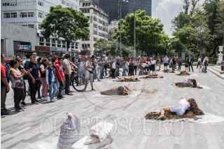 CIUDAD DE MEXICO, 14JUNIO2019.- Artistas de diversas organizaciones sociales realizaron un perfomance "Pues nos escucharon", frente al Hemiciclo a Juárez, como parte de las actividades del XI Encuentro Hemisférico de Performance El Mundo al revés: Humor, ruido y performance el cual reúne alrededor de 700 activistas, académicos y creadores. El perfomance de acuerdo a los participantes maneja simbologías respecto a la relación entre la humanidad y la naturaleza. FOTO: MARIO JASSO /CUARTOSCURO.COM