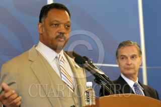 MEXICO, D.F., 18MAYO2005.- El reverendo Jesse Jackson y Luis Ernesto Derbez, Secretario de Relaciones Exteriores, ofrecieron una conferencia de prensa después de la reunión que el líder afroamericano sostuvo con el primer mandatario mexicano en los Pinos. FOTO: Moisés Pablo/CUARTOSCURO.COM