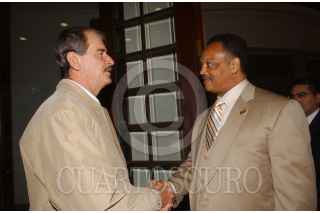 MEXICO D.F. 18MAYO2005.- En la residencia oficial de Los Pinos, el presidente Vicente Fox recibio a Jesse Jackson, lider de la comunidad afroamericana. FOTO: Ariel Gutierrez/PRESIDENCIA/CUARTOSCURO.COM
