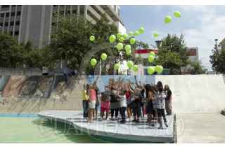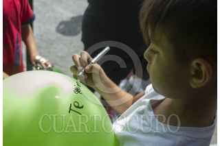 MONTERREY, NUEVO LEÓN, 16JUNIO2019.- Miembros de Fuerzas Unidas por Nuestros Desaparecidos en Nuevo León (FUNDENL), reunieron a niñas y niños de padres desaparecidos, quienes escribieron un mensaje a sus padres ausentes en globos, en la Plaza de los Desaparecidos. FOTO: GABRIELA PÉREZ MONTIEL /CUARTOSCURO.COM