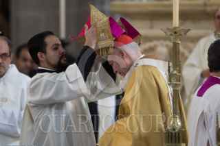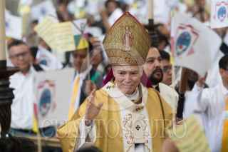 CIUDAD DE MÉXICO, 16JUNIO2019.- Carlos Aguiar Retes, Arzobispo Primado de México, encabezó la homilía en la Catedral Metropolitana la cual dedico a los padres del país en el marco del festejo del Día del Padre. FOTO: MOISÉS PABLO /CUARTOSCURO.COM
