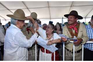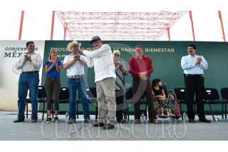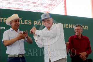 CAMARGO, CHIHUAHUA, 16JUNIO2019.- El Presidente de México, Andrés Manuel López Obrador, encabezó la entrega de Programas Integrales de Bienestar en esta ciudad, ahí dio a conocer que su gobierno planea restaurar la planta de amoniaco de la Unidad Petroquímica de Petróleos Mexicanos (Pemex), la cual esta inactiva desde 2002. FOTO: PRESIDENCIA /CUARTOSCURO.COM