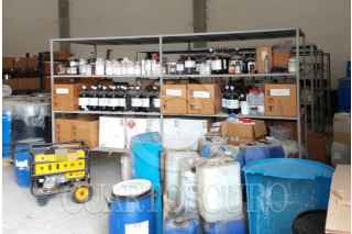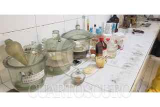 MONTERREY, NUEVO LEÓN, 16JUNIO2019.- Al cumplimentar una orden de cateo en dos inmuebles ubicados en el municipio de García, Nuevo León, elementos de la Fiscalía General de la República (FGR) aseguraron una bodega probablemente utilizada como laboratorio para la elaboración de la droga sintética conocida como fentanilo. En seguimiento a una investigación, el Ministerio Público Federal (MPF) solicitó y obtuvo del Juez de Distrito Especializado en el Sistema Penal Acusatorio del Centro de Justicia Penal Federal, con sede en Nuevo León, el mandamiento que fue cumplimentado por elementos de la Policía Federal Ministerial (PFM) y peritos especializados, en dos domicilios ubicados en la colonia Parque Industrial Ciudad Mitras y Pedregal La Silla. En el primer inmueble, los agentes de la Fiscalía General de la República localizaron un área de laboratorio con instrumentos, maquinaria, sustancias químicas, una barra, cuadernos con anotaciones en la materia y un refrigerador, así como otros espacios donde se ubicaban tambos, cajas, frascos y anaqueles. FOTO: FGR /CUARTOSCURO.COM