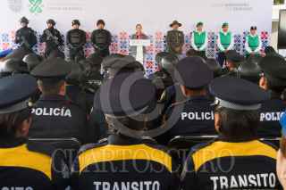 CIUDAD DE MÉXICO, 17JUNIO2019.- La jefa del Gobierno de la Ciudad, Claudia Sheinbaum Pardo, y el titular de la Secretaria de Protección Ciudadana, Jesús Orta, encabezaron la Presentación del Comando de Operaciones Especiales y de la Unidad Táctica de Auxilio a la Población. FOTO: VICTORIA VALTIERRA /CUARTOSCURO.COM