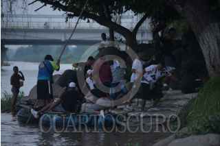 CIUDAD HIDALGO, CHIAPAS, 17JUNIO2019.- El río Suchiate es y ha sido desde hace mas de treinta años fuente de empleo para miles de personas, a través del comercio entre México y Guatemala, la implementación de seguridad para control migratorio a alterado la vida cotidiana de los pobladores y trabajadores, quienes tienen miedo de que las Fuerzas Armadas mexicanas interfieran con sus labores diarias. La presidenta municipal Sonia Hernandez acudió con los balseros esta mañana después de que elementos de la Marina visitaran por unos minutos el paso El Limón, para explicar a los trabajadores que la presencia de los marinos es solo para el control de la migración irregular y no por la mercancía, a pesar de haber aclarado que el gobierno federal hasta el momento no ha comunicado como será la actuación de la Guardia Nacional en este territorio. FOTO: ISABEL MATEOS /CUARTOSCURO.COM