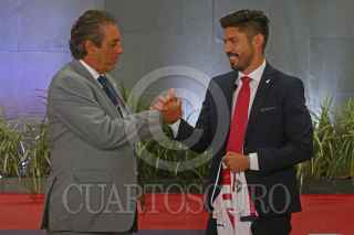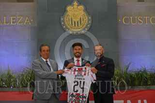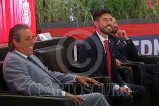ZAPOPAN, JALISCO, 19JUNIO2019.- José Luis Higuera CEO del Club Guadalajara y Tomas Boy Director Técnico del Club Guadalajara, presentaron este medio día al jugador proveniente del Club América Oribe Peralta quien será el nuevo refuerzo del Club Chivas de Guadalajara, esto en las instalaciones del Estadio Akron. FOTO: FERNANDO CARRANZA GARCIA / CUARTOSCURO.COM