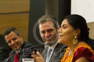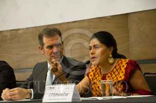 CIUDAD DE MÉXICO, 19JUNIO2019.- Edgar Arias, Vocal Ejecutivo de la junta del INE en el estado de Oaxaca; Alejandro Murat, gobernador de Oaxaca; Lorenzo Córdova; Consejero Presidente del Instituto Nacional Electoral y Eufrosina Cruz, Secretaria de Pueblos Indígenas y Afroamericano del estado de Oaxaca, encabezaron la firma de Convenio de Colaboración con el Gobierno del estado de Oaxaca, el cual busca refrendar el compromiso e interés de la ciudadanía por la participación democrática, está en el Lobby del Auditorio del Instituto. FOTO: ROGELIO MORALES /CUARTOSCURO.COM