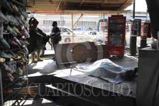 ACAPULCO, GUERRERO, 19JUNIO2019.- Un hombre fue asesinado de al menos seis balazos en las inmediaciones del Mercado de las Flores, en la avenida Constituyentes y esquina Diego Hurtado de Mendoza. El cuerpo quedo tendido en la banqueta, uno de los presuntos asesinos fue detenido calles más adelante, en el lugar quedo tirada una arma, al lugar llegaron efectivos de la fuerzas preventivas, municipales de la unidad 230 como primer respondiente del suceso. Marinos y Policías Municipales resguardaron el lugar, el cuerpo fue trasladado al servicio medico forense en calidad de desconocido. FOTO: BERNANDINO HERNÁNDEZ /CUARTOSCURO.COM