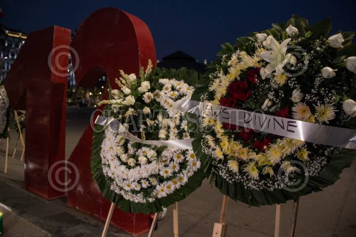 CIUDAD DE MÉXICO, 20JUNIO2019.- Familiares de las víctimas de la discoteca News Divine -donde el 20 de junio de 2008, se realizó un operativo en el lugar por parte de autoridades capitalinas y delegacionales que se salió de control y dejó 12 muertos- colocaron Antimonumento temporal durante su manifestación frente al Palacio Nacional, previo a la conferencia diaria del presidente de la República, Andrés Manuel López Obrador, esperando ser recibidos. FOTO: ANDREA MURCIA /CUARTOSCURO.COM