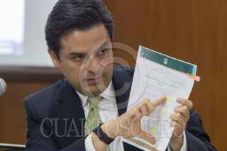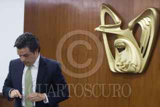 CIUDAD DE MÉXICO, 20JUNIO2019.- Zoe Robledo, director del IMSS, ofreció una conferencia de prensa para hablar sobre la creación de empleos, ayer un medio nacional público que en el mes de mayo la creación de empleos formales se cayo en 88%, el chiapaneco explicó que el mes de mayo es un mes en donde esta cifra siempre decrece cada año y como prueba mostró notas publicadas del mismo medio en años anteriores, aunque también argumento a favor de este tema a los becarios del programa "Jóvenes construyendo el futuro", quienes si bien no cuentan con un empleo formal si están desempeñando un actividad económica. FOTO: MOISÉS PABLO /CUARTOSCURO.COM