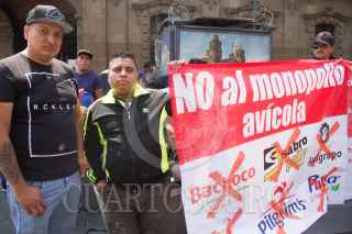 CIUDAD DE MÉXICO, 20JUNIO2019.- Despachadores de expendios de Pollo, realizaron una protesta en la plancha del Zócalo capitalino. Informaron sobre los altos precios en este alimento. FOTO: VICTORIA VALTIERRA /CUARTOSCURO.COM