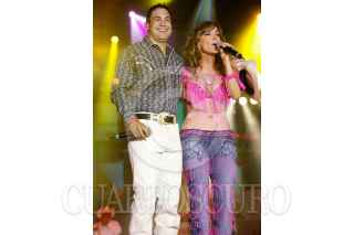 ACAPULCO, GUERRERO 19MAYO2005.- Uno de los vocalistas del grupo Kumbia Kings es practicamente resacatado de los fans luego de que en un momento de euforia se aventó al público. FOTO: Miguel Dimayuga/CUARTOSCURO.COM