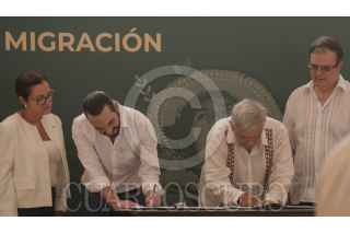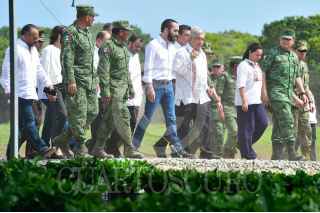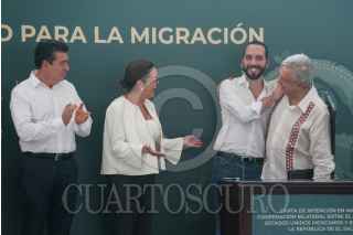 TAPACHULA, CHIAPAS, 20JUNIO2019.- Andrés Manuel López Obrador, Presidente de México, Nayib Bukele, mandatario de El Salvador asistieron a la presentación del programa ¨Sembrando Vida¨, Plan de Desarrollo para Migración. El Jefe del Ejecutivo Federal estuvo acompañado de Óscar Gurría, presidente municipal de Tapachula; el General Luis Crescencio Sandoval, secretario de la Defensa Nacional; Pablo Salvador Anliker Infante, ministro de Agricultura y Ganadería de El Salvador; Rutilio Escandón, gobernador de Chiapas; Alexandra Hill, ministra de Relaciones Exteriores de El Salvador, Marcelo Ebrard, secretario de Relaciones Exteriores; María Luisa Albores, secretaria de Bienestar; el Almirante José Rafael Ojeda, secretario de Marina; Ernesto Castro, secretario particular del presidente de El Salvador y Carolina Encinas, jefa de gabinete de El Salvador. FOTO: PRESIDENCIA /CUARTOSCURO.COM