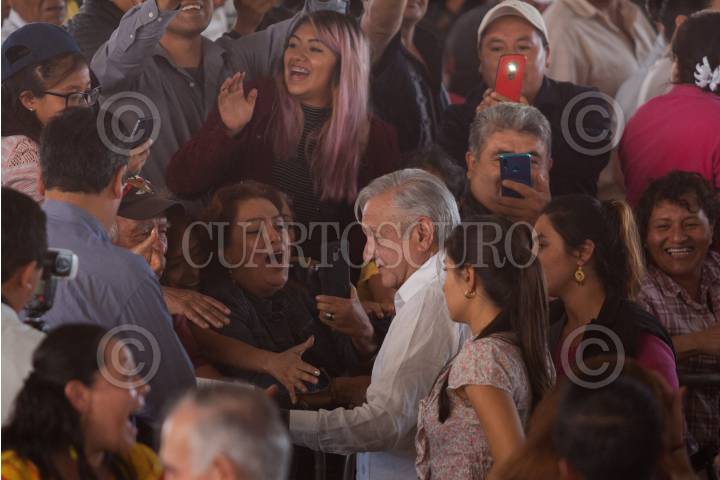 SAN MARTÍN TEXMELUCAN, PUEBLA.- Andrés Manuel López Obrador, presidente de México, durante la presentación y entrega de apoyos de por parte de la Secretaria del Bienestar. FOTO: GALO CAÑAS /CUARTOSCURO.COM
